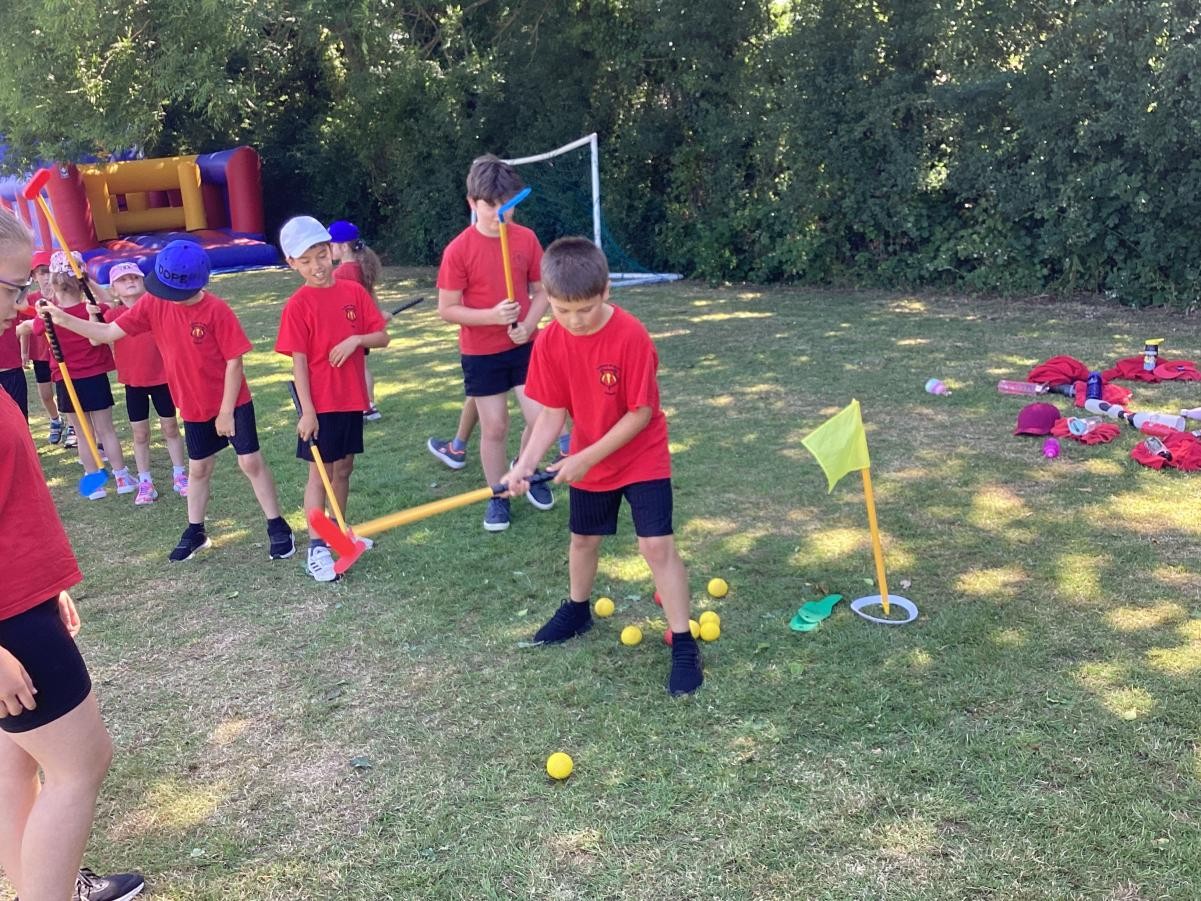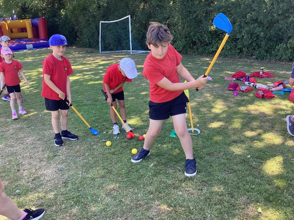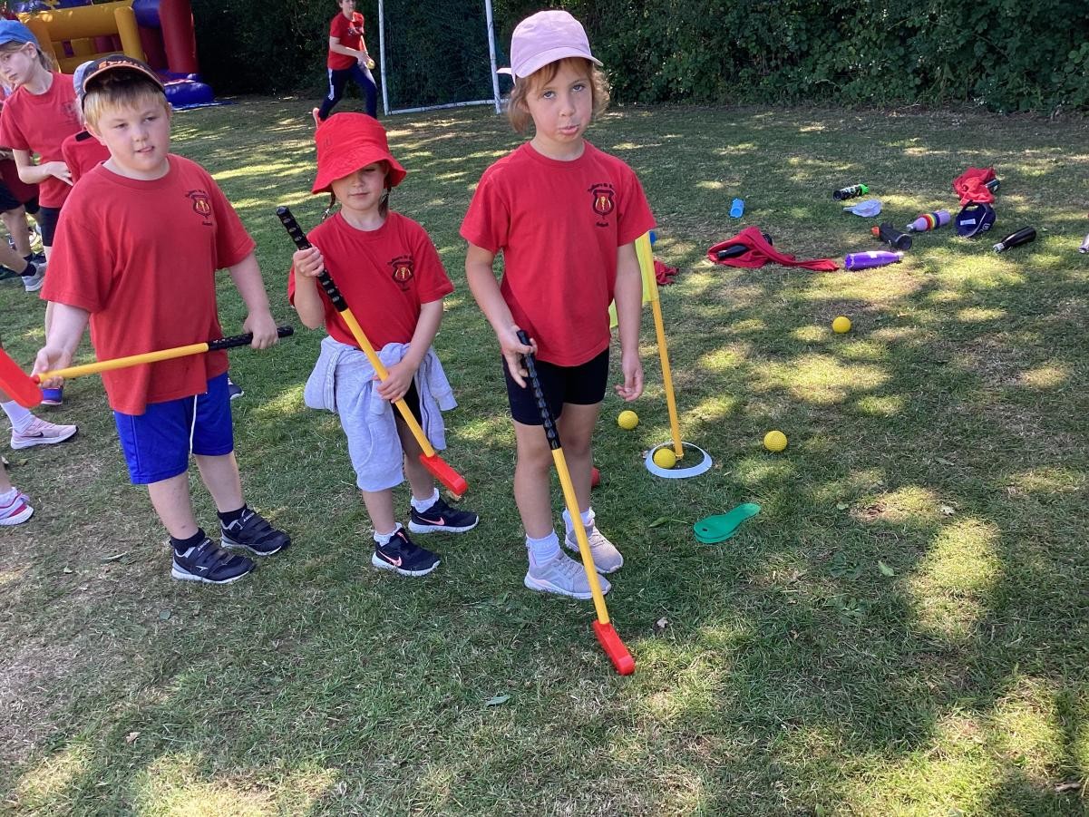 Sports Day morning saw the children competing in their colour teams in a variety of events, including: Teams Relay, Football penalties, the assault course, the long jump, golf, bean bag toss and the javelin. Well done to the Green team who came out as this years winner.