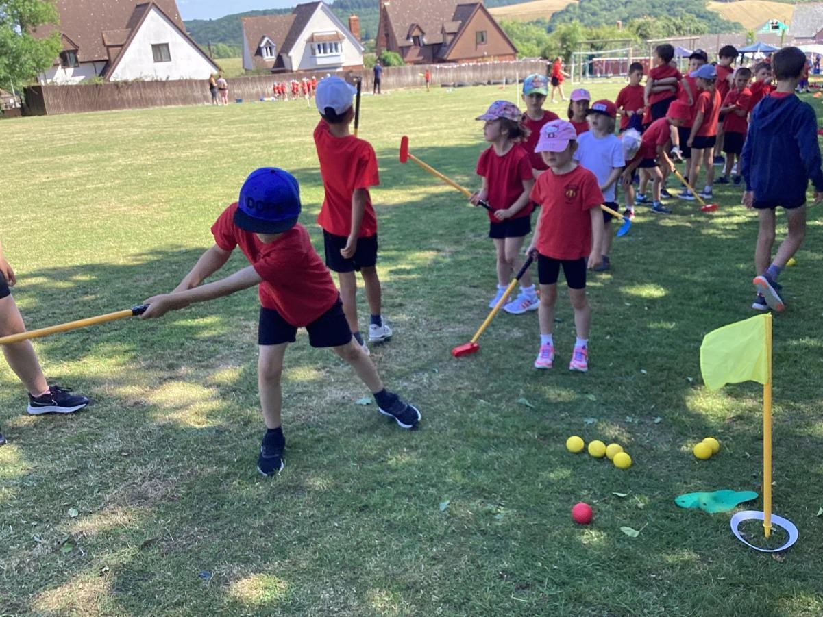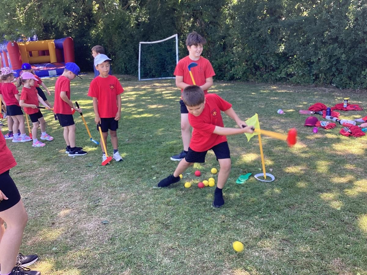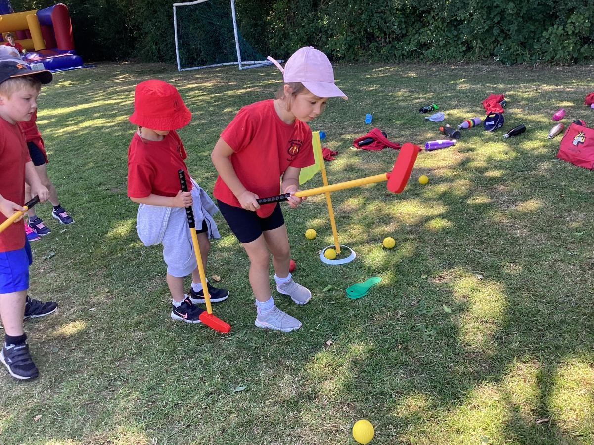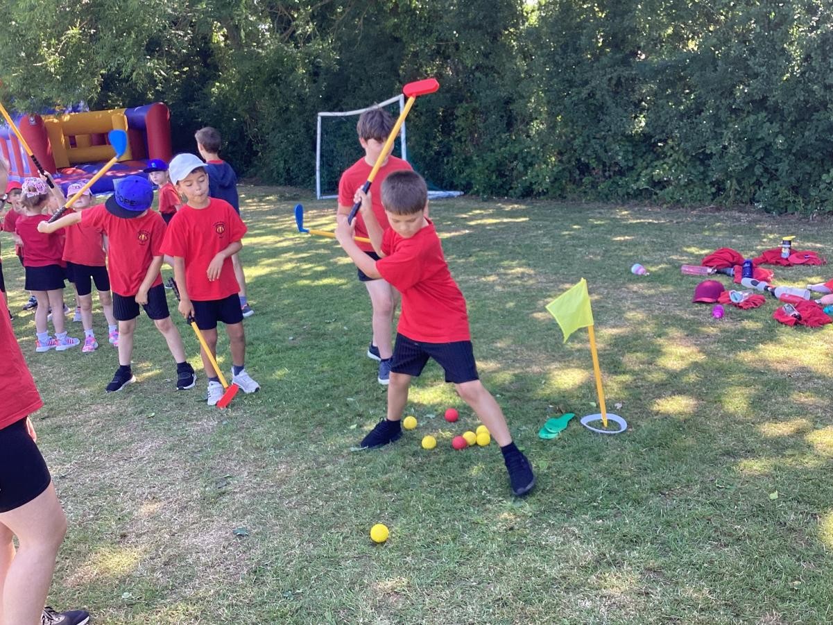 Sports Day morning saw the children competing in their colour teams in a variety of events, including: Teams Relay, Football penalties, the assault course, the long jump, golf, bean bag toss and the javelin. Well done to the Green team who came out as this years winner.